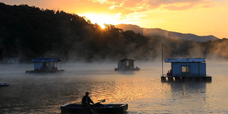 새벽녘 물안개 피어오르는 고삼저수지, 나는 풍경을 낚고 낚시꾼은 세월을 낚고…모진 자들의 새벽…
