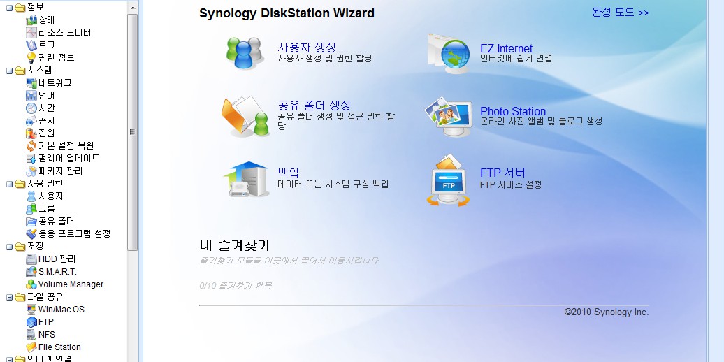 DetailsSynology사의 NAS Diskstation 1010+ 포스팅하는 사진이 누적되면서 웹호스팅 개인 용량도 한계에 다다르고 하여 NAS(Network Attached Storage)로 직접 홈페이지를 운영하기로 결정하였습니다. NAS는 서버에 비해 구축비용이나 관리비용(전력료 등)은 최소화하면서 서버의 기본적인 기능을 제공하는 장점이 있습니다. 사용해 보니 한가지 단점으로는 서버운영에 비해 초기 방문시 잠시 지체하는 점이 있는 것 같아 보입니다.